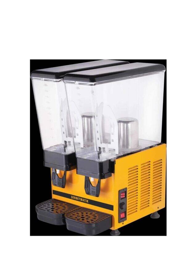 Şerbetmatik İkili 20+20 LT Karıştırıcılı soğutucu ayran makinesi doğal parçacıksız meyve suyu, ayran ve şalgam sularının soğutulması ve dağıtılması için tasarlanmış tezgah üstü soğuk içecek dispenseri. Hazne ortası soğutma sistemi ile içeceği son damlasına kadar eşit olarak soğutur termostatlı soğutma sistemi sayesinde %15 Enerji tasarrufu sağlar. Geniş musluk hortumu sayesinde akışkanlık sağlar. Sınıfının en düşük çalışması ses seviyesi. 20+20 Litre kapasitelidir. Üç farklı renk seçenekleri( Siyah, Sarı, Paslanmaz) Uzun ömürlü kompresör. Gıdaya uygun tıkanmaz silikon musluk. Ayarlanabilen ayaklar sayesinde zeminde topallama yapmaz. Manyetik fıskiyeli karıştırma sistemi sayesinde özellikle parçacıksız meyve sularının, ayranın ve şalgamın soğutulması ve dağıtılması için tasarlanmış tezgah üstü dispenser geniş soğutma tabanı sayesinde içecekler daha hızlı ve son damlasına kadar eşit olarak soğur bu sayede klasik ürünlere göre %50’ye varan enerji tasarrufu sağlar. Pratik musluk sistemi tek el kullanılarak rahatça içecek alabilmeyi sağlar. Geniş musluk hortumu hızlı dolum sağlar ve kolaylıkla sökülüp temizlenebilir. Manyetik fıskiye sistemi sayesinde hazne içinde bulunan içeceğin alt motor bölümüne sızma riski ortadan kalkar, bu sayede motorun ömrü uzar. Fıskiyenin eşit dağıtım özelliği sayesinde içecek azalsa bile görsellik değişmez. Mükemmel temizlik ve hijyen için içecek ile temas eden tüm parçalara kolayca ulaşılır ve hızlı bir şekilde temizlenebilir. Polikarbon hazne darbeye dayanıklı ve gıda kullanımına uygundur. Küçük ve orta ölçekli işletmeler için uygun çözümdür. Damlalıkta bulunan seviye göstergesi sayesinde atık suyun taşmadan önce boşaltılması gerektiği rahatlıkla fark edilir. Daha detaylı bilgi için “Mağazaya Soru Sor” Kısmından bizlere ulaşabilirsiniz. Ölçüler: 36x50x72 Ağırlık: 30 Kg Enerji: 220 Volt – 50 Hz Litre: 20+20 Litre. 2 yıl garantilidir