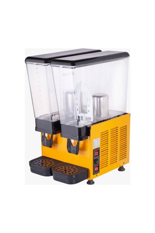 Şerbetmatik İkili 20+20 LT Karıştırıcılı soğutucu ayran makinesi doğal parçacıksız meyve suyu, ayran ve şalgam sularının soğutulması ve dağıtılması için tasarlanmış tezgah üstü soğuk içecek dispenseri. Hazne ortası soğutma sistemi ile içeceği son damlasına kadar eşit olarak soğutur termostatlı soğutma sistemi sayesinde %15 Enerji tasarrufu sağlar. Geniş musluk hortumu sayesinde akışkanlık sağlar. Sınıfının en düşük çalışması ses seviyesi. 20+20 Litre kapasitelidir. Üç farklı renk seçenekleri( Siyah, Sarı, Paslanmaz) Uzun ömürlü kompresör. Gıdaya uygun tıkanmaz silikon musluk. Ayarlanabilen ayaklar sayesinde zeminde topallama yapmaz. Manyetik fıskiyeli karıştırma sistemi sayesinde özellikle parçacıksız meyve sularının, ayranın ve şalgamın soğutulması ve dağıtılması için tasarlanmış tezgah üstü dispenser geniş soğutma tabanı sayesinde içecekler daha hızlı ve son damlasına kadar eşit olarak soğur bu sayede klasik ürünlere göre %50’ye varan enerji tasarrufu sağlar. Pratik musluk sistemi tek el kullanılarak rahatça içecek alabilmeyi sağlar. Geniş musluk hortumu hızlı dolum sağlar ve kolaylıkla sökülüp temizlenebilir. Manyetik fıskiye sistemi sayesinde hazne içinde bulunan içeceğin alt motor bölümüne sızma riski ortadan kalkar, bu sayede motorun ömrü uzar. Fıskiyenin eşit dağıtım özelliği sayesinde içecek azalsa bile iştah açıcı görsellik değişmez. Mükemmel temizlik ve hijyen için içecek ile temas eden tüm parçalara kolayca ulaşılır ve hızlı bir şekilde temizlenebilir. Polikarbon hazne darbeye dayanıklı ve gıda kullanımına uygundur. Küçük ve orta ölçekli işletmeler için uygun çözümdür. Damlalıkta bulunan seviye göstergesi sayesinde atık suyun taşmadan önce boşaltılması gerektiği rahatlıkla fark edilir. Daha detaylı bilgi için bizlere ulaşabilirsiniz. Ölçüler: 36x50x72 Ağırlık: 30 Kg Enerji: 220 Volt – 50 Hz Litre: 20+20 Litre. 2 yıl garantilidir.