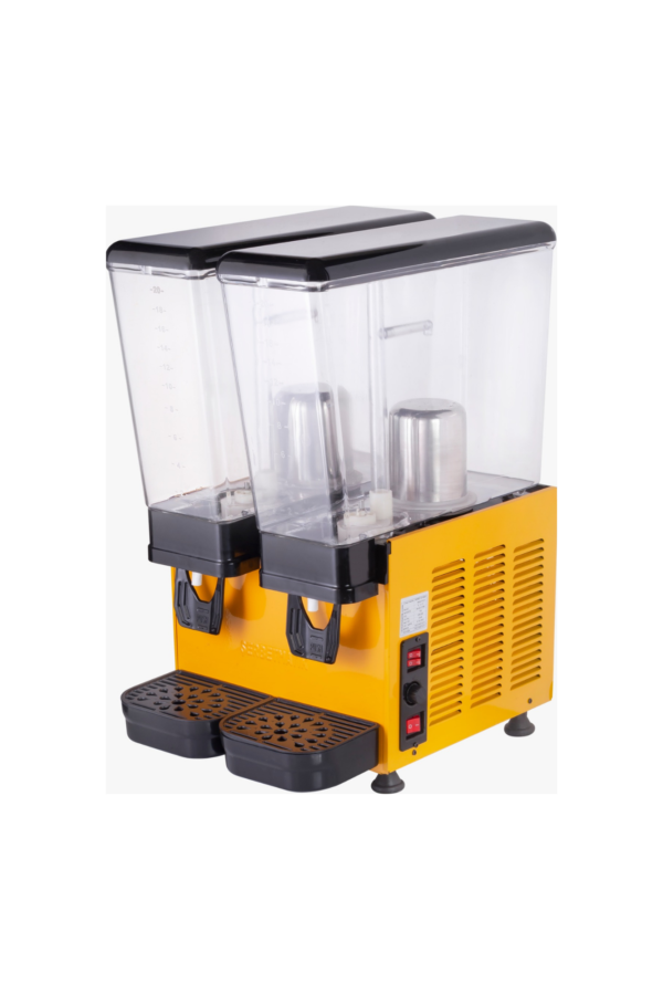 Şerbetmatik ikili 20+20 LT Karıştırıcılı soğutucu limonata makinesi doğal parçacıksız meyve suyu, ayran ve şalgam sularının soğutulması ve dağıtılması için tasarlanmış tezgah üstü soğuk içecek dispenseri. Hazne ortası soğutma sistemi ile içeceği son damlasına kadar eşit olarak soğutur termostatlı soğutma sistemi sayesinde %15 Enerji tasarrufu sağlar. Geniş musluk hortumu sayesinde akışkanlık sağlar. Sınıfının en düşük çalışması ses seviyesi. 20+20 Litre kapasitelidir. Üç farklı renk seçenekleri( Siyah, Sarı, Paslanmaz) Uzun ömürlü kompresör. Gıdaya uygun tıkanmaz silikon musluk. Ayarlanabilen ayaklar sayesinde zeminde topallama yapmaz. Manyetik fıskiyeli karıştırma sistemi sayesinde özellikle parçacıksız meyve sularının, ayranın ve şalgamın soğutulması ve dağıtılması için tasarlanmış tezgah üstü dispenser geniş soğutma tabanı sayesinde içecekler daha hızlı ve son damlasına kadar eşit olarak soğur bu sayede klasik ürünlere göre %50’ye varan enerji tasarrufu sağlar. Pratik musluk sistemi tek el kullanılarak rahatça içecek alabilmeyi sağlar. Geniş musluk hortumu hızlı dolum sağlar ve kolaylıkla sökülüp temizlenebilir. Manyetik fıskiye sistemi sayesinde hazne içinde bulunan içeceğin alt motor bölümüne sızma riski ortadan kalkar, bu sayede motorun ömrü uzar. Fıskiyenin eşit dağıtım özelliği sayesinde içecek azalsa bile iştah açıcı görsellik değişmez. Mükemmel temizlik ve hijyen için içecek ile temas eden tüm parçalara kolayca ulaşılır ve hızlı bir şekilde temizlenebilir. Polikarbon hazne darbeye dayanıklı ve gıda kullanımına uygundur. Küçük ve orta ölçekli işletmeler için uygun çözümdür. Damlalıkta bulunan seviye göstergesi sayesinde atık suyun taşmadan önce boşaltılması gerektiği rahatlıkla fark edilir. Daha detaylı bilgi için bizlere ulaşabilirsiniz. Ölçüler: 36x50x72 Ağırlık: 30 Kg Enerji: 220 Volt – 50 Hz Litre: 20+20 Litre. 2 yıl garantilidir.