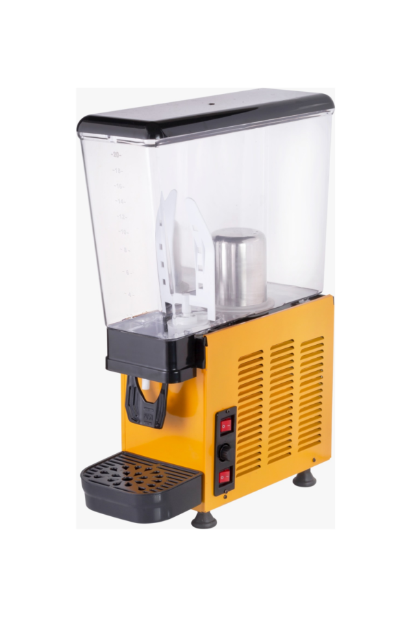 Şerbetmatik Tekli 20 LT Karıştırıcılı soğutucu ayran makinesi doğal parçacıksız meyve suyu, ayran ve şalgam sularının soğutulması ve dağıtılması için tasarlanmış tezgah üstü soğuk içecek dispenseri. Hazne ortası soğutma sistemi ile içeceği son damlasına kadar eşit olarak soğutur termostatlı soğutma sistemi sayesinde %15 Enerji tasarrufu sağlar. Geniş musluk hortumu sayesinde akışkanlık sağlar. Sınıfının en düşük çalışması ses seviyesi. 20 Litre kapasitelidir. Üç farklı renk seçenekleri( Siyah, Sarı, Paslanmaz) Uzun ömürlü kompresör. Gıdaya uygun tıkanmaz silikon musluk. Ayarlanabilen ayaklar sayesinde zeminde topallama yapmaz. Manyetik fıskiyeli karıştırma sistemi sayesinde özellikle parçacıksız meyve sularının, ayranın ve şalgamın soğutulması ve dağıtılması için tasarlanmış tezgah üstü dispenser geniş soğutma tabanı sayesinde içecekler daha hızlı ve son damlasına kadar eşit olarak soğur bu sayede klasik ürünlere göre %50’ye varan enerji tasarrufu sağlar. Pratik musluk sistemi tek el kullanılarak rahatça içecek alabilmeyi sağlar. Geniş musluk hortumu hızlı dolum sağlar ve kolaylıkla sökülüp temizlenebilir. Manyetik fıskiye sistemi sayesinde hazne içinde bulunaniçeceğin alt motor bölümüne sızma riski ortadan kalkar, bu sayede motorun ömrüuzar. Fıskiyenin eşit dağıtım özelliği sayesinde içecek azalsa bile iştah açıc ıgörsellik değişmez. Mükemmel temizlik ve hijyen için içecek ile temas eden tüm parçalara kolayca ulaşılır ve hızlı bir şekilde temizlenebilir. Polikarbon hazne darbeye dayanıklı ve gıda kullanımına uygundur. Küçük ve orta ölçekli işletmeler için uygun çözümdür. Damlalıkta bulunan seviye göstergesi sayesinde atık suyun taşmadan önce boşaltılması gerektiği rahatlıkla fark edilir. Daha detaylı bilgi için bizlere ulaşabilirsiniz. Ölçüler: 18x50x72 Ağırlık: 20 Kg Enerji: 220 Volt – 50 Hz Litre: 20 Litre. 2 yıl garantilidir.