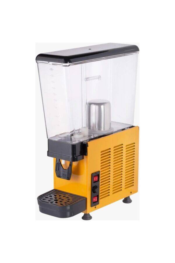 Şerbetmatik Tekli 20 LT Karıştırıcılı soğutucu limonata makinesi doğal parçacıksız meyve suyu, ayran ve şalgam sularının soğutulması vedağıtılması için tasarlanmış tezgah üstü soğuk içecek dispenseri. Hazne ortasısoğutma sistemi ile içeceği son damlasına kadar eşit olarak soğutur termostatlısoğutma sistemi sayesinde %15 Enerji tasarrufu sağlar. Geniş musluk hortumusayesinde akışkanlık sağlar. Sınıfının en düşük çalışması ses seviyesi. 20 Litre kapasitelidir. Üç farklı renk seçenekleri( Siyah, Sarı,Paslanmaz) Uzun ömürlü kompresör. Gıdaya uygun tıkanmaz silikon musluk.Ayarlanabilen ayaklar sayesinde zeminde topallama yapmaz. Manyetikfıskiyeli karıştırma sistemi sayesinde özellikle parçacıksız meyve sularının,ayranın ve şalgamın soğutulması ve dağıtılması İçin tasarlanmış tezgah üstüdispenser geniş soğutma tabanı sayesinde içecekler daha hızlı ve son damlasınakadar eşit olarak soğur bu sayede klasik ürünlere göre %50’ye varan enerjitasarrufu sağlar. Pratik musluk sistemi tek el kullanılarak rahatça içecekalabilmeyi sağlar. Geniş musluk hortumu hızlı dolum sağlar ve kolaylıklasökülüp temizlenebilir. Manyetik fıskiye sistemi sayesinde hazne içinde bulunaniçeceğin alt motor bölümüne sızma riski ortadan kalkar, bu sayede motorun ömrüuzar. Fıskiyenin eşit dağıtım özelliği sayesinde içecek azalsa bile iştah açıcıgörsellik değişmez. Mükemmel temizlik ve hijyen için içecek ile temas eden tümparçalara kolayca ulaşılır ve hızlı bir şekilde temizlenebilir. Polikarbonhazne darbeye dayanıklı ve gıda kullanımına uygundur. Küçük ve orta ölçekliişletmeler için uygun çözümdür. Damlalıkta bulunan seviye göstergesi sayesindeatık suyun taşmadan önce boşaltılması gerektiği rahatlıkla fark edilir. Dahadetaylı bilgi için bizlere ulaşabilirsiniz. Ölçüler: 18x50x72 Ağırlık: 20 Kg Enerji: 220 Volt – 50 Hz 20 Litre. 2 yıl garantilidir.
