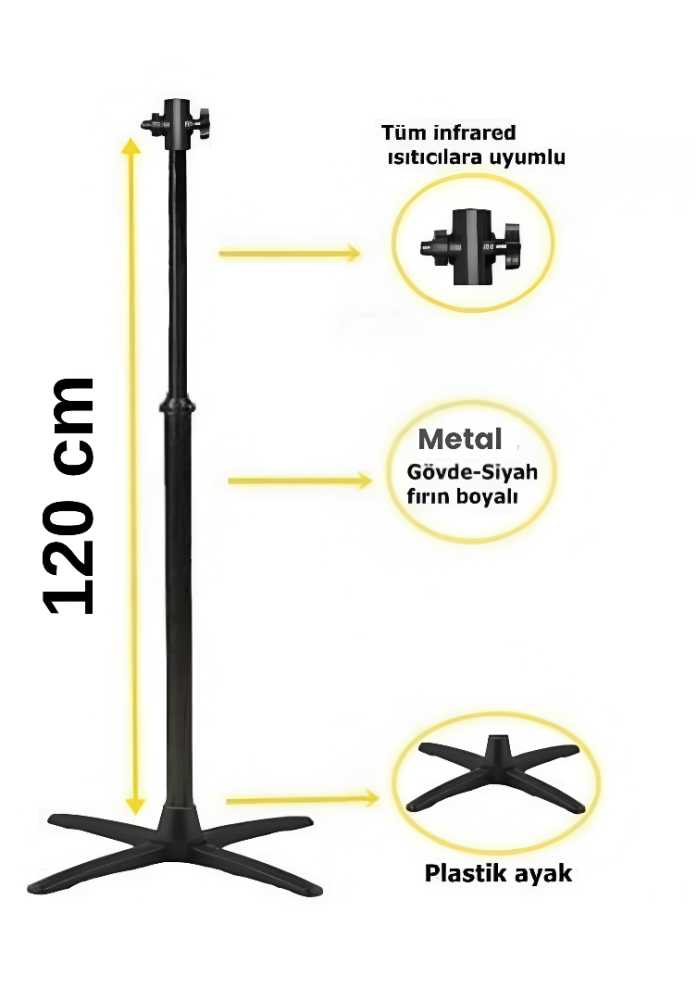 Infrared elektrikli ısıtıcı ayağı, dayanıklı yapısı ve evrensel uyumluluğu ile ısıtıcınızı güvenli ve dengeli bir şekilde konumlandırmanızı sağlar. Sağlam metal gövdesi ve siyah statik boya kaplamasıyla uzun ömürlü kullanım sunar. Tüm infrared ve duvar tipi ısıtıcılarla; Sunstar, Kumtel, Awox, Ardonat, Goldsun, Cafesun, Hottable, Welder, UFO, Luxell, Fakir, Arzum, Sinbo gibi birçok marka ile uyumludur. uyumludur.
